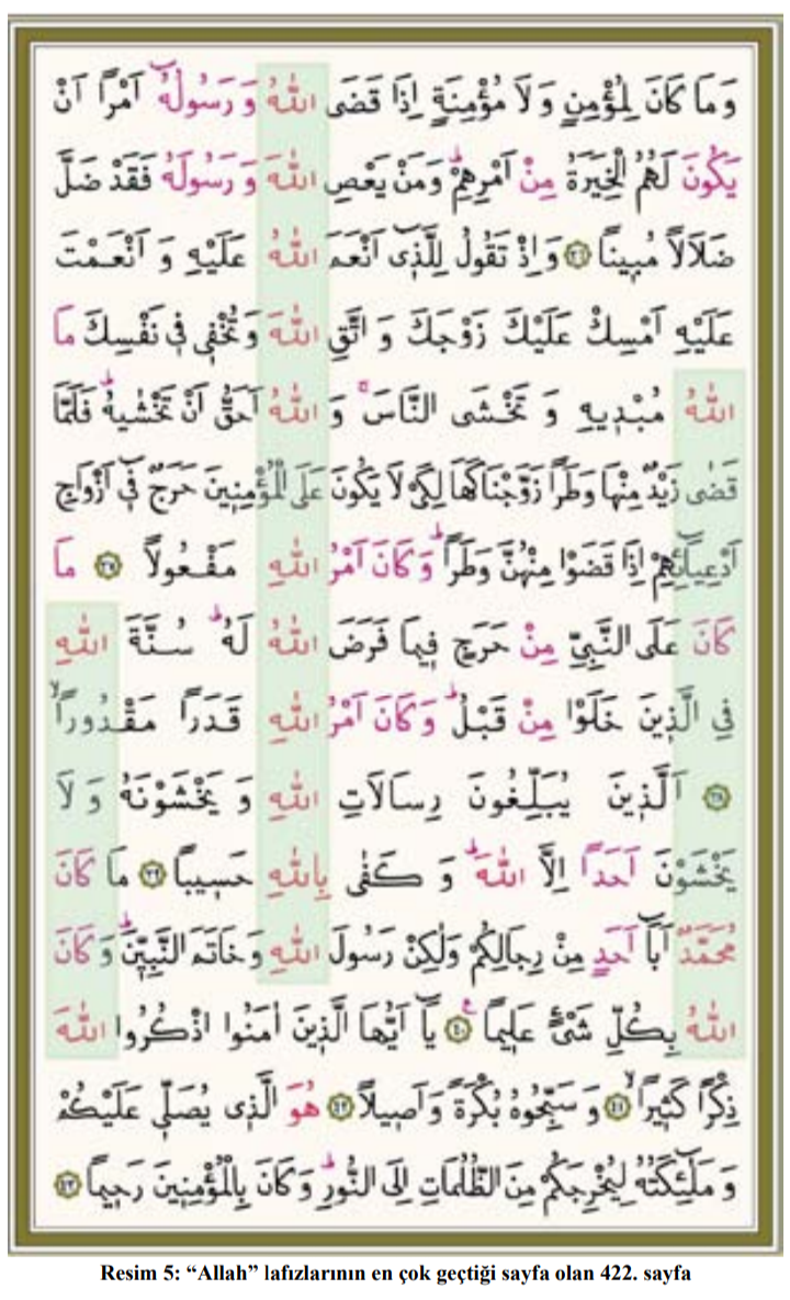 Allah lafızları ve Esma ve bazı kelimeler alt alta hizalı olarak tevafuk etti.